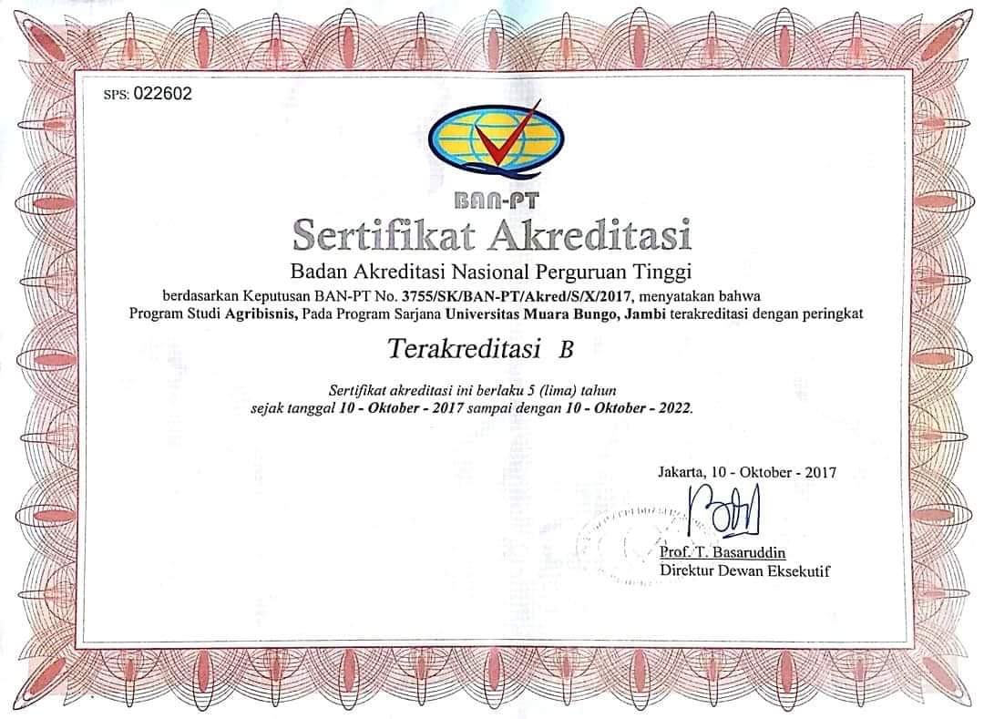 Arsip Sertifikat Akreditasi AGRIBISNIS